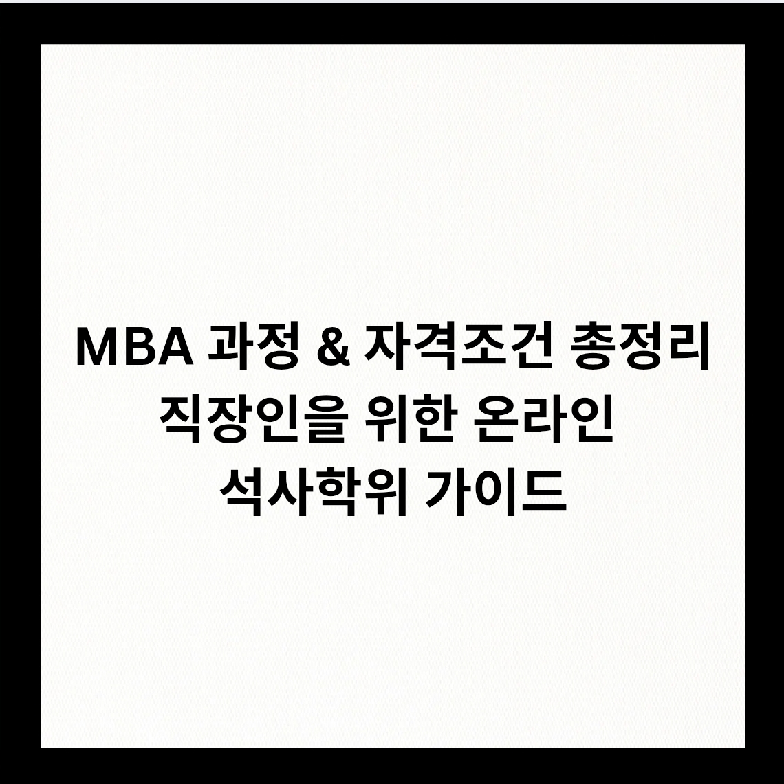 - 단점: 완전한 온라인 MBA는 아님 (정기 출석 필요)